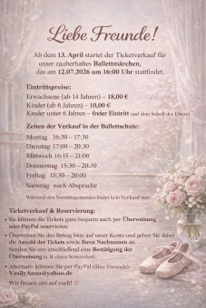 Am 29. Mai 2025 nahm unsere Anna Haiduk am Finale des internationalen Wettbewerbs Dance Stars in Veldhoven, Niederlande, teil. Unsere Ballerina tanzte die "Esmeralda" und belegte den ersten Platz! Damit wurde sie Europameisterin!